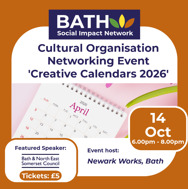 Join the Bath Social Impact Network for the latest event in its Cultural Organisation Networking series, bringing together cultural organisations from across Bath and North East Somerset.