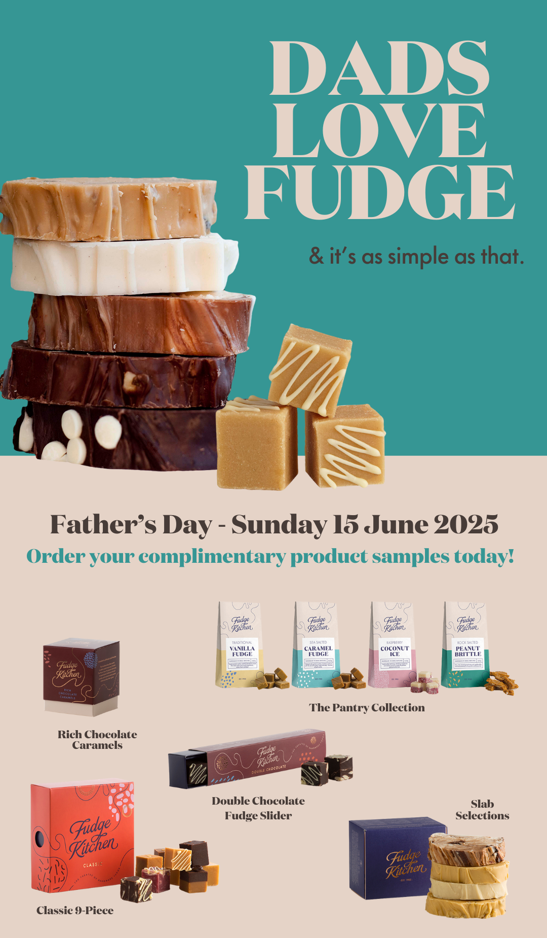 Order your complimentary fudge samples from The Fudge Kitchen in time for Father’s Day on 15th June this year! more info
