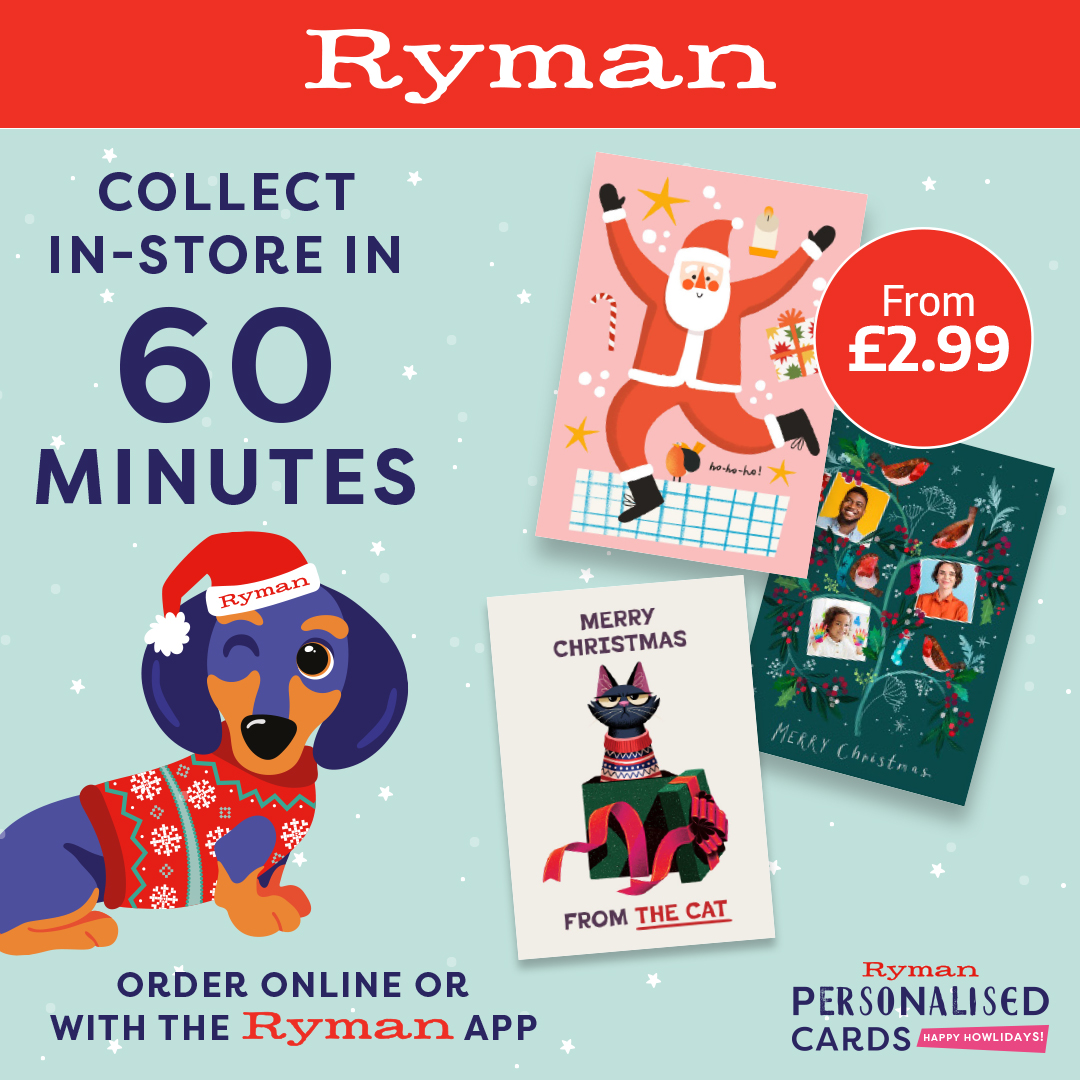Need a last minute card? Create unique Christmas cards in minutes with Ryman’s personalised card service. Choose from thousands of designs, add your own photos and messages, and collect them in just 60 minutes from over 190 locations across the UK!🎄🎁